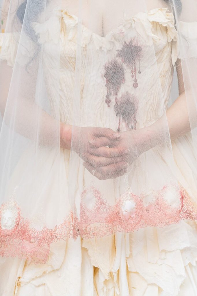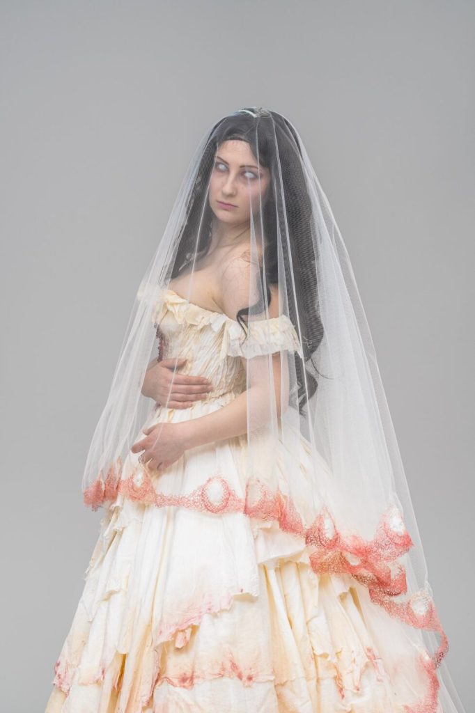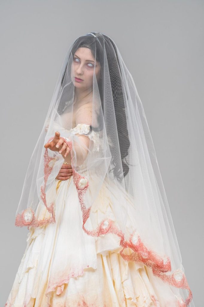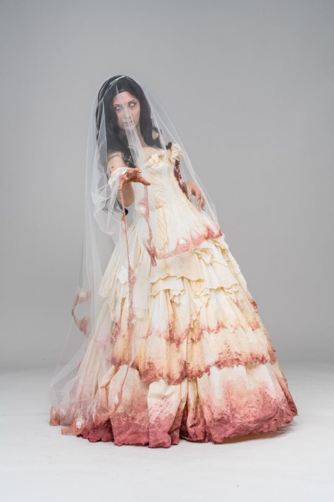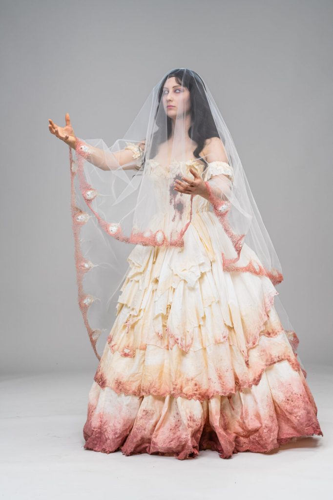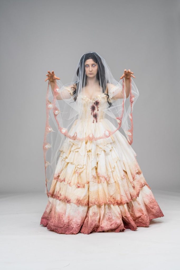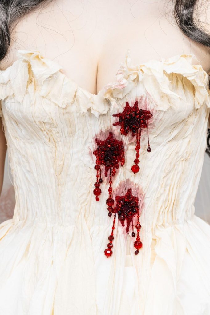 Skills involved include: Corsetry, Embroidery, Beading and Breaking down.